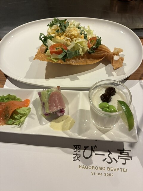 海鮮、サーロイン、ヒレなどいろいろな種類が食せるメニューを予約しました。