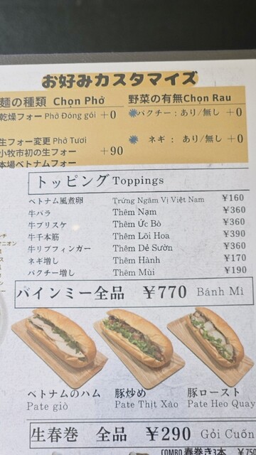 具材は『ベトナムハム、豚炒め、豚ロース』から選べます