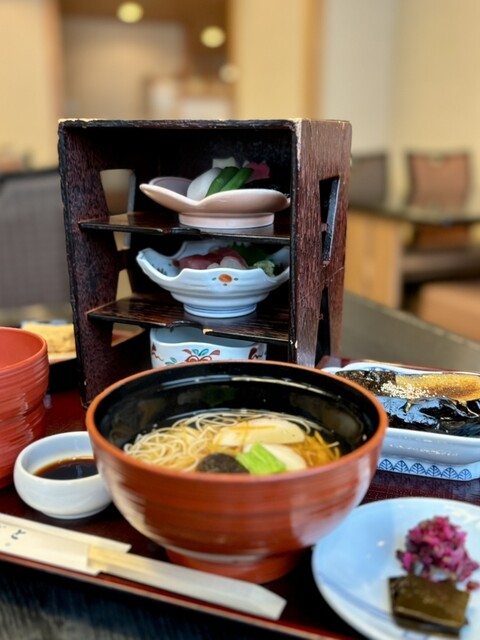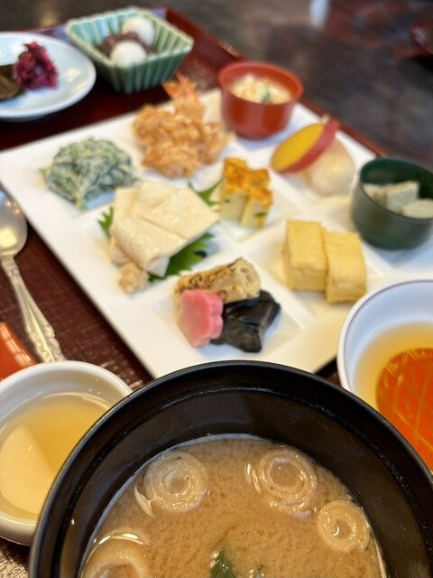 そして、あら汁、お魚のお出汁がお代わり自由、生卵が...
