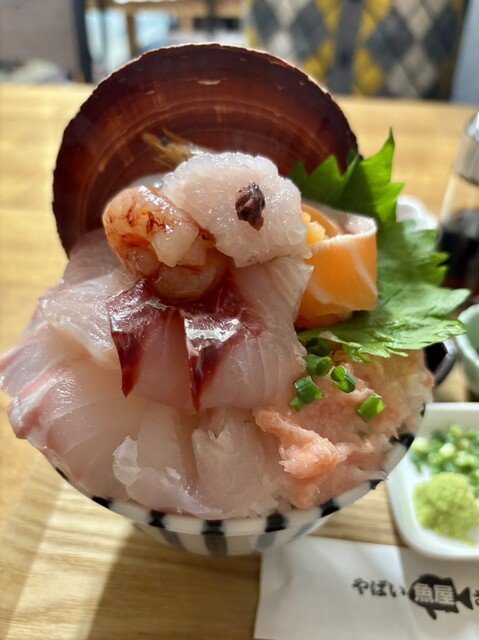 何がヤバいかと言うと、魚の新鮮さ、切り身の厚さ大きさ、魚の種類、ご飯は姫どんぶりの大きさですが250gのご飯がぎっしりと入ってます