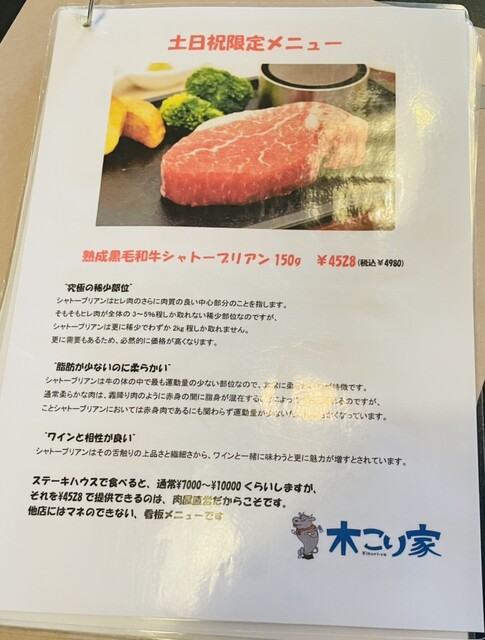 前回は、看板メニューの極レアな粗挽きハンバーグを楽しみましたが、今回は土日祝限定メニュー
