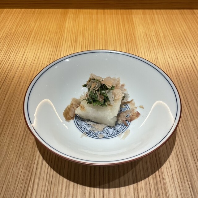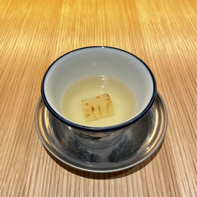 今回の私の最もお気に入り。今までに食べたことの無い味わいで、食感も風味も言語化できない美味しさに、1品目からコース全体の期待が高まる。