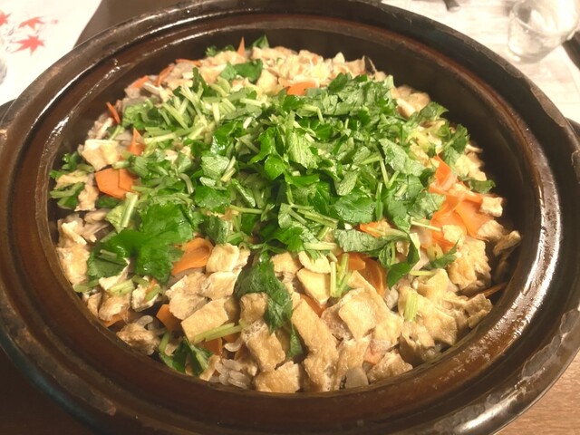 鳥五目ご飯を選びました。土鍋で炊いたご飯。