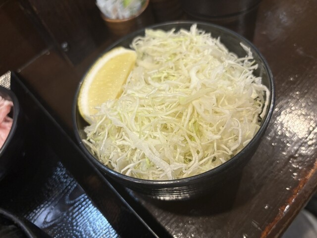 付け合わせのローストポークも柔らかく、ご飯のお供に最適だった。お味噌汁とキャベツはお代わり無料との事だが、満腹だったので今回は利用せず()
