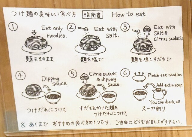 つけ汁は、濃い鶏豚の旨味+魚介のコク+昆布、野菜の甘さ+円やかなカエシ醤油との絶妙なバランスが非常に良い。口当たりはサラッとしたタイプ