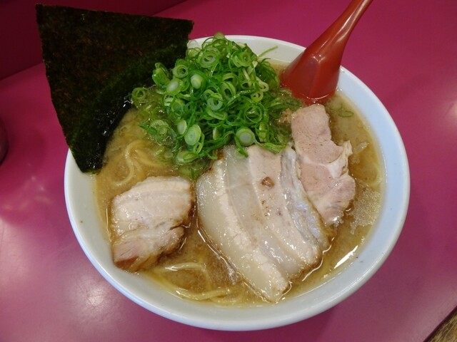 最近まで知らなかった人気の老舗ラーメン屋さん。久留米ラーメンの様です。土曜日昼間、何人かの行列、少し待って入店。メニューもシンプル、しかもリーズナブルな値段。ラーメン大とおにぎり、これで800円。味も...