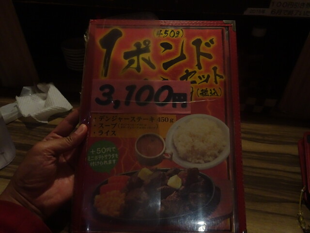 ミスターデンジャーこと松永さんのお店、念願叶って来れました。ミスターも厨房におられ感激、写真撮りますかと聞かれ、恥ずかしさからつい断ってしまった、少し後悔。ステーキは赤身のハラミ、私の好みです、ナイフは要らない柔らかな肉、ミスターの丁寧な仕事ぶりが肉に良く出ています。