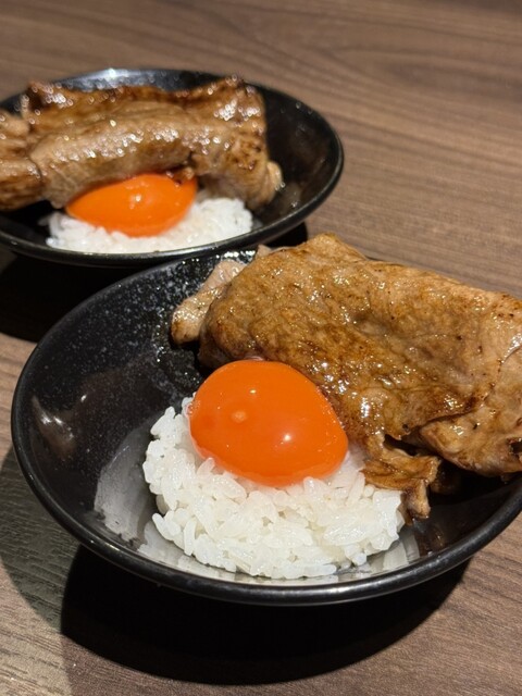 炙ったレアめのお肉に卵黄とタレが絡み、口に入れた瞬間にとろける食感と風味が広がる!