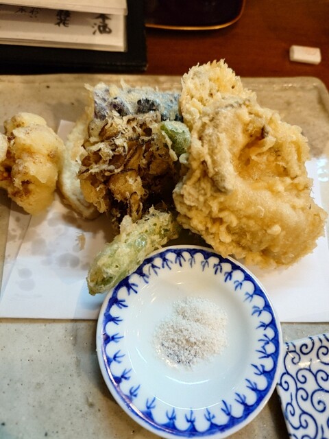 天ぷら盛り;ヒゲダラ 野菜色々(天ぷらを揚げるたび油を変えていることに感心する 天ぷら専門店顔負けである)