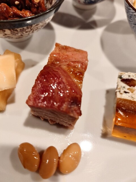 前菜盛り合わせ(よだれ鶏、ピータンゼリー寄せ、クラゲの檸檬和え、胡桃の飴炊き、焼豚)