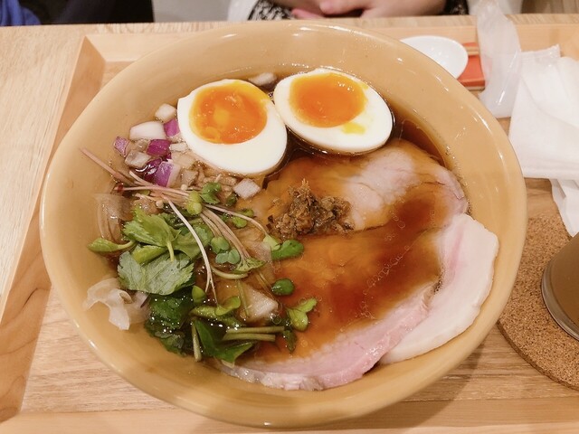 チャーシューは豚、鶏ムネ、共にレアで低温で丁寧に時間を掛けており、柔らかい。玉子も程良い半熟で美味しかったです。
