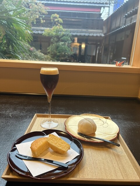ににぎで和菓子を購入し、店内でコーヒーと共にいただく。