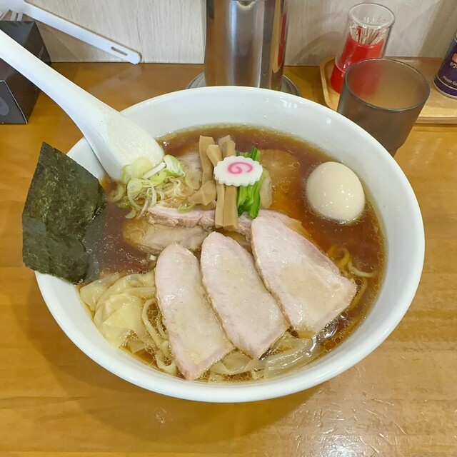 焼豚ワンタン麺味玉入り麺大盛り生姜醤油