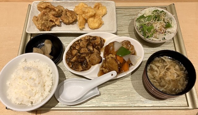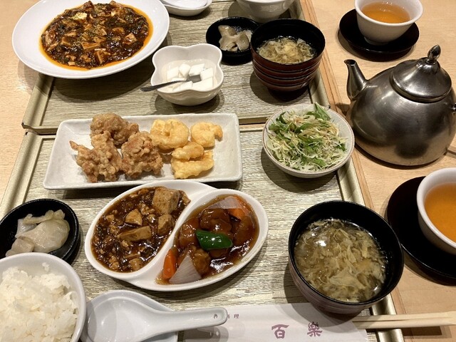 百楽の麻婆豆腐 幸福(シンフゥー)4種類からそれぞれ選択して、取り分けて味比べして愉しまれているお二方