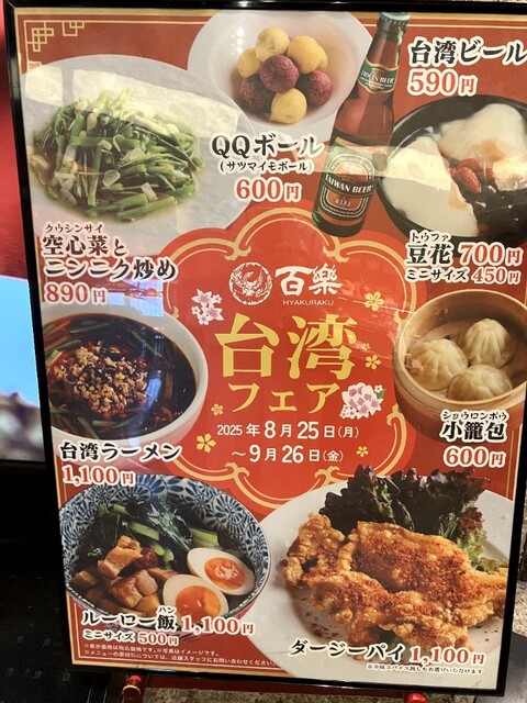 9月26日まで、百楽 台湾フェア メニューを開催中♪