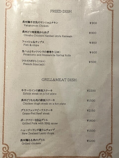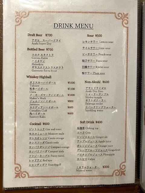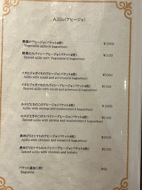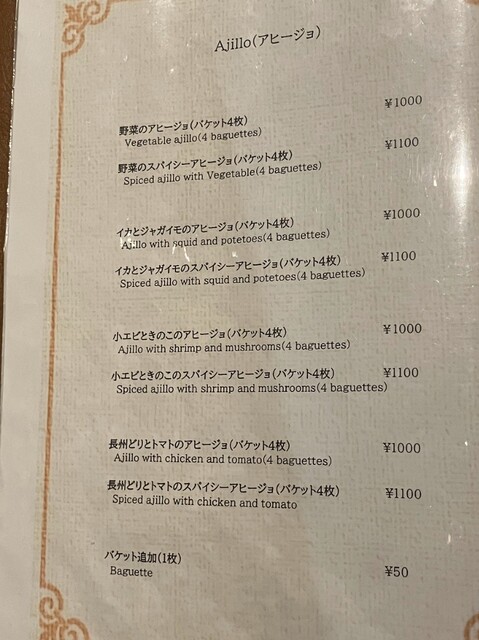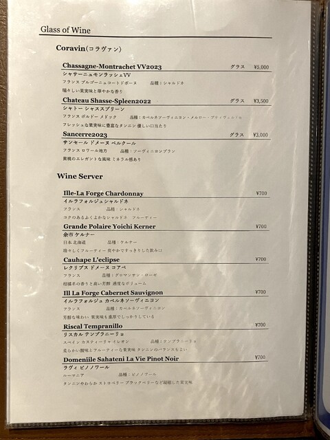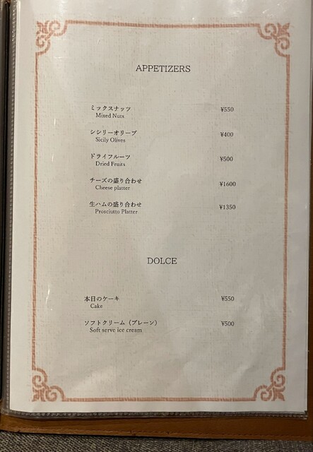 ディナーメニューも見せてくださいましたので、掲載させていただきます