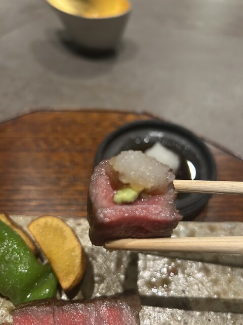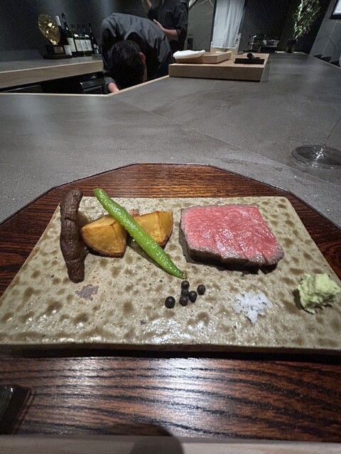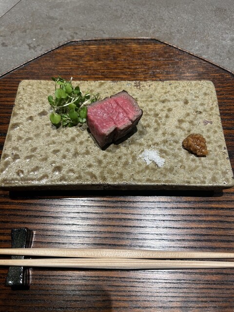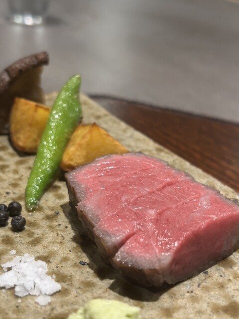 低温調理された牛肉のステーキは柔らかく、塩や山葵とともにシンプルに楽しむことで素材の力を実感できた。
