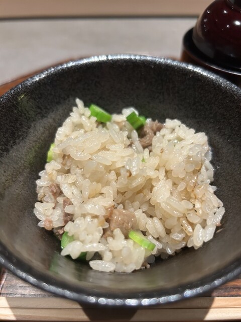 そして今回何と言っても抜群に美味しかったのが、しっかり味付けされたシメの炊き込みご飯。お米(つや姫だったか)と神戸牛の巧みなコラボレーションが最後の最後に繰り出されてテンションは最高潮に。お腹の満足感は高いのに箸が止まらない超絶の一品であった。