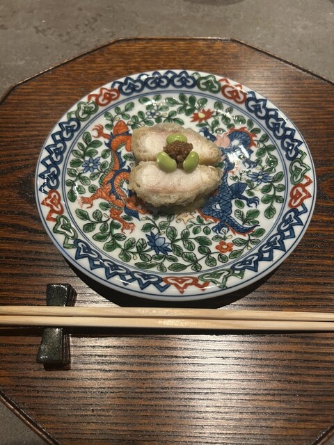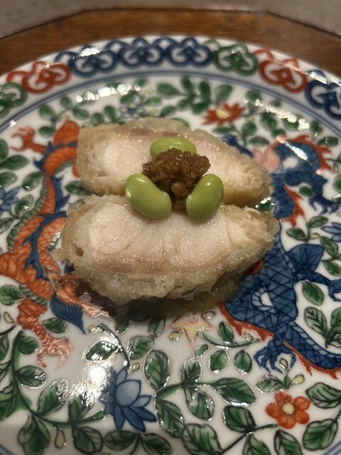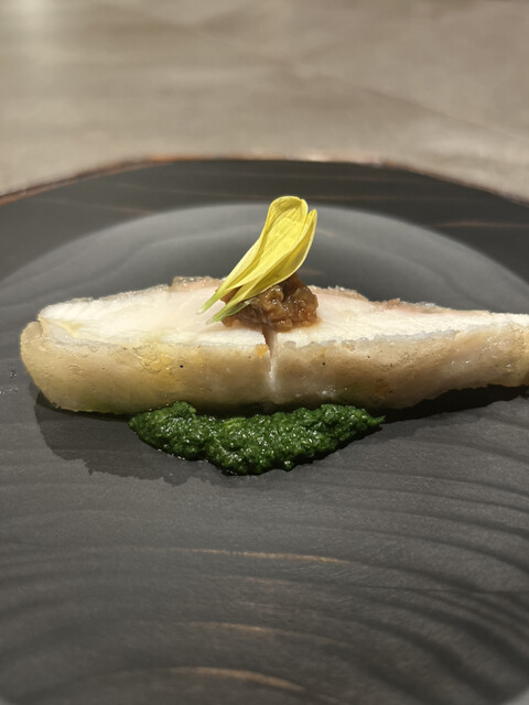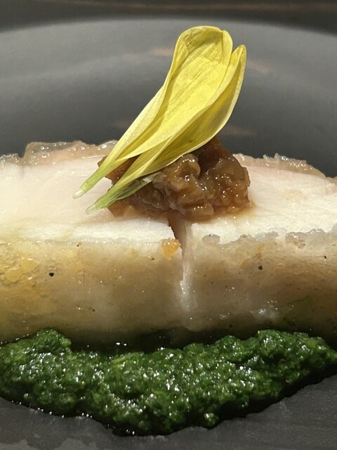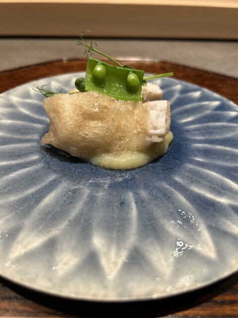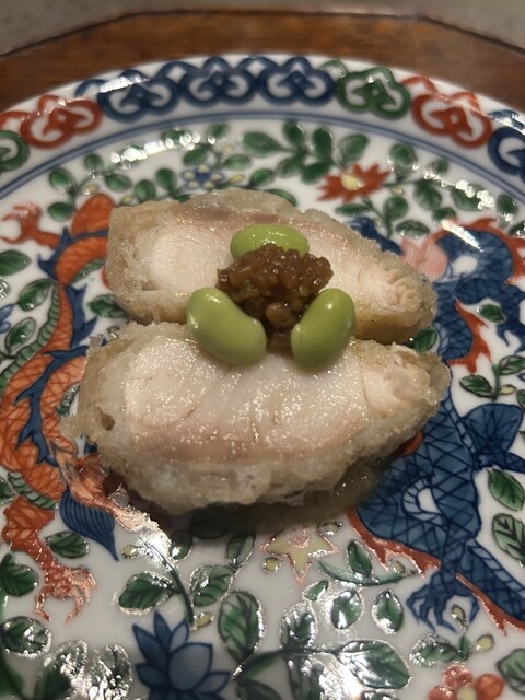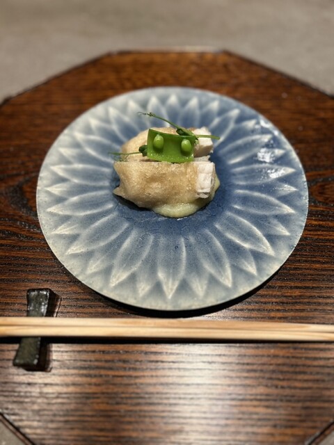 特に、衣を纏ったチョウザメの天ぷらにずんだ餡をかけた一皿は、斬新ながらも和の基本に忠実で、技術と感性の高さを如実に感じさせる。