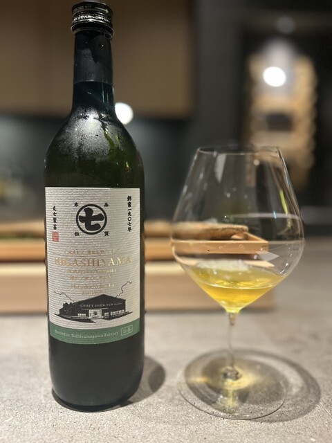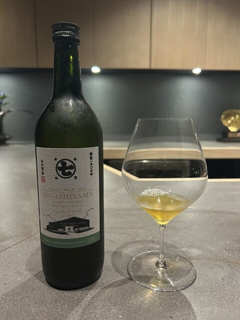 どら焼きに合わせて供されるのは、CRAFT BREW TEA「東山」。日本茶をワイングラスに注いで提供され、香りの立ち方がまるで熟成白ワインのよう。火入れの香ばしさと穏やかな甘みが口内を整え、食後の余韻を美しく締めくくる。甘味との相性も計算され尽くしている。