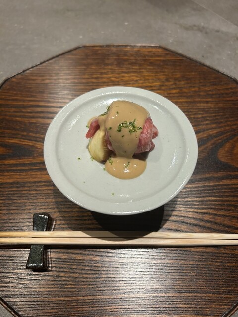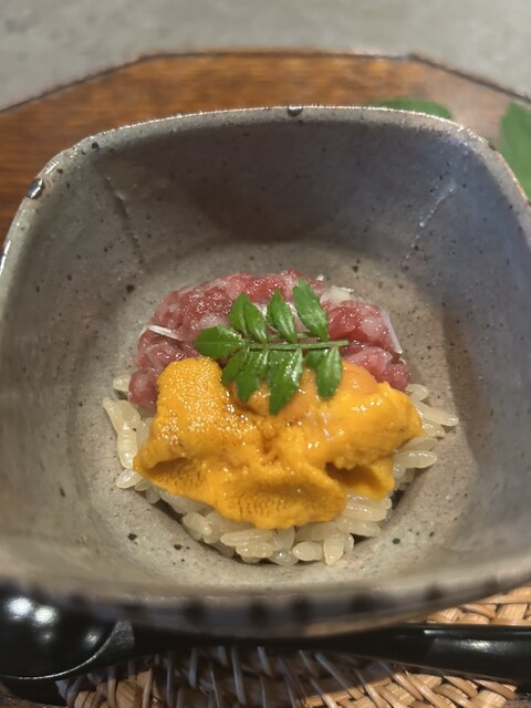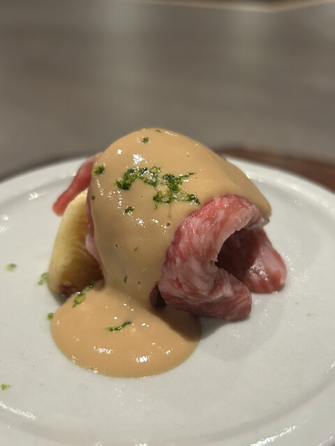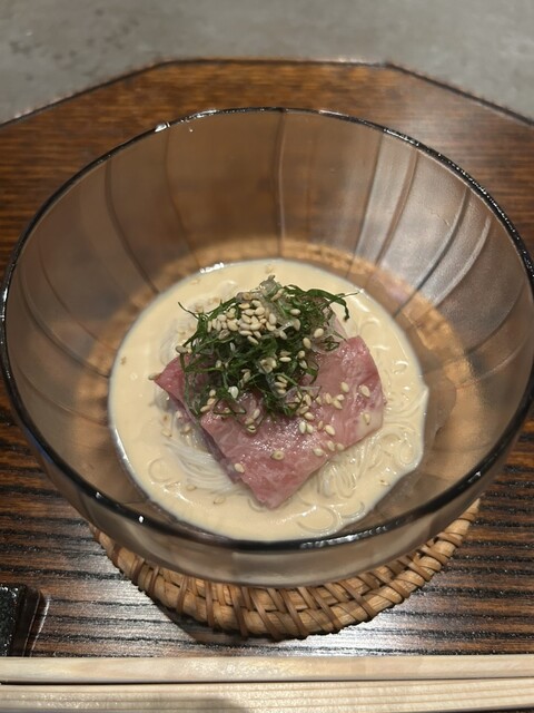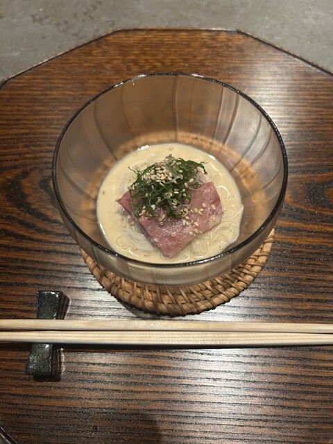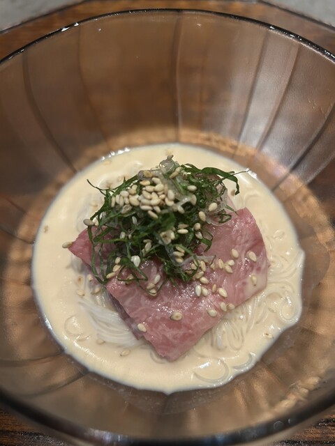 中盤には、和牛と雲丹をのせた酢飯、ごま出汁の素麺に和牛をあわせた素麺など、趣向を凝らした肉料理が続く。
