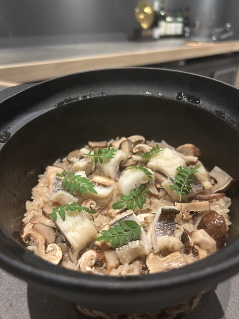 締めは土鍋で炊き上げた鱧と茸の御飯が供される。ふくよかな香りと出汁の旨味が米に染み込み、思わずおかわりを欲するほどである。最後の一口まで満足感に満たされる、完成度の高いコースである。