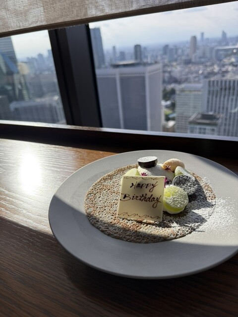 窓際確約とのことでしたが、窓に向かって作られたカウンターの並び席で眺望は最高、国会議事堂を見下ろしながら贅沢な気分になりました。暑い日はお願いすればシェードを下げていただけます。