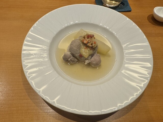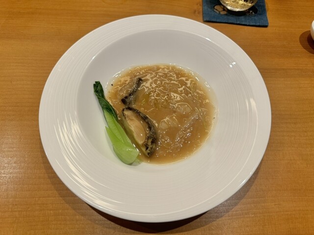 小皿の前菜諸々が終了して、フカヒレと鮑の煮込み、これは分かる。想像通り美味しいです。