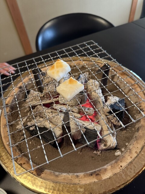 仕上げは、炭火の焼き餅からのあんこ餅?