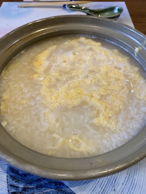 予想は小丼くらいの茶碗に入って出てくると思っていましたが、厨房に一旦戻ってから届けられたのは、一回り小さい土鍋にたっぷりのご飯でびっくり。4人前?