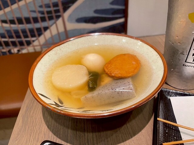 追加で串揚げもオーダーしたが、あっさりしたおでんと油っこい揚げ物のバランスもよくこの飲み方にハマりそう。