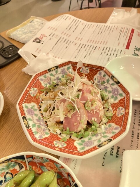さてまずはビールで乾杯。もちろんかみさんには「今日もソフトドリンク飲み放題だよ^_^」と言いつつ、ビールは2杯も飲んでしまいました。その後はQRからの注文となりましたが、ジンジャーエールがなかったのは残念でなりません(//∇//)。料理は写メを含めて8品楽しみました。量はちょっと少なく感じましたが、味は程良い食感でした。飲み放題のみだったので、1人あたり何品かのノルマ制度があるのかと思いましたが、「三人で一品だけでも大丈夫です^_^」と、スラリとした男性店内さんから言われ、気分良く注文ができました。19時くらいには満席になりました。すべてグループで一番奥のテーブルは20 名程の病院関係と思われる組。我々とその間には丸テーブル2つに、肘がぶつかる間隔に10名が楽しんでいました。そして我々の横の4人がけテーブルには、小学生と中学生3人とご夫婦家族の5名が、窮屈そうにしてお食事を堪能してました。よって我々3人が一番余裕ある席で2時間を過ごしました。料理もサービスも申し分ないお店でしたが、67歳になる従兄弟は、「次回は利用客の少ない駅近くの、静かな店でやりたいなあ」って、どうやら耳が遠くなり、賑やかな店での会話が通らなかったようだ。
