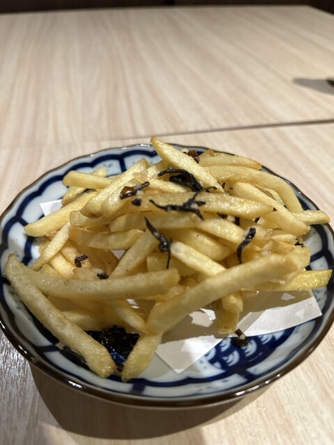 ポテトフライ(塩昆布)はホクホク食感で、塩昆布の旨味がアクセントになり手が止まりませんでした。