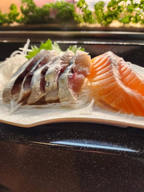 刺身 〆さば サーモン 〆さばは 必ず注文する定番 何時 食べても安定の美味しさ サーモンは臭みも無く とても美味しい
