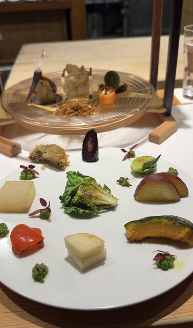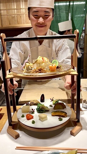 季節の料理が少しずつ美しく並ぶ構成は、目にも華やかで上品な味わい。出汁の奥行きや素材の旨みが丁寧に引き出されていて、食べ進めるほどに満足感が高まっていきます。