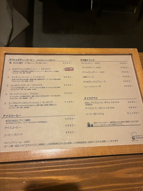 コーヒーには、コーヒー豆の説明のついたカードもついています。