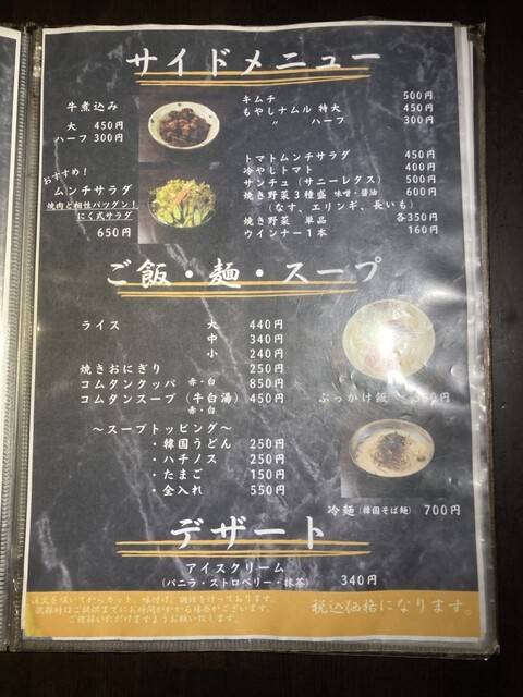 今回は注文してませんが、飲み放題付きのコース もあり、5,500円とコスパも良いので次回はコースを食べてみたいですね。