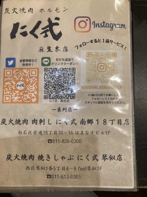 先日は、琴似にある炭火焼肉 焼きしゃぶ にく式 琴似店で大満足につき、今回は本店デビューです。