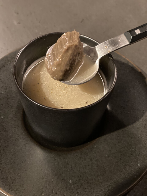 アスパラの甘さがたっぷりのムースに、旬のウニととろとろのあんを掛けていただくでお肉の後に◎ですね。