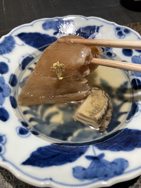 フカヒレを和出汁でいただくのは初めてですが、これもまた美味しいですね。しかも金箔入りとは、ちょっと贅沢な気分に。