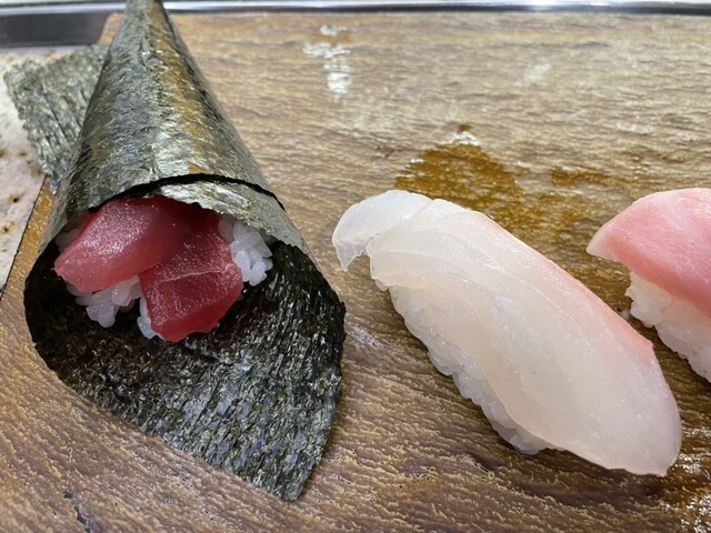 全ては覚えていないのですが、まぐろ、漬けまぐろ、本鮪中とろ、本鮪大とろ、かまとろ、漬けいか、帆立、銀だら、えんがわ、金目鯛、のどくろ、鉄火手巻、ぼたん海老などを食べました。