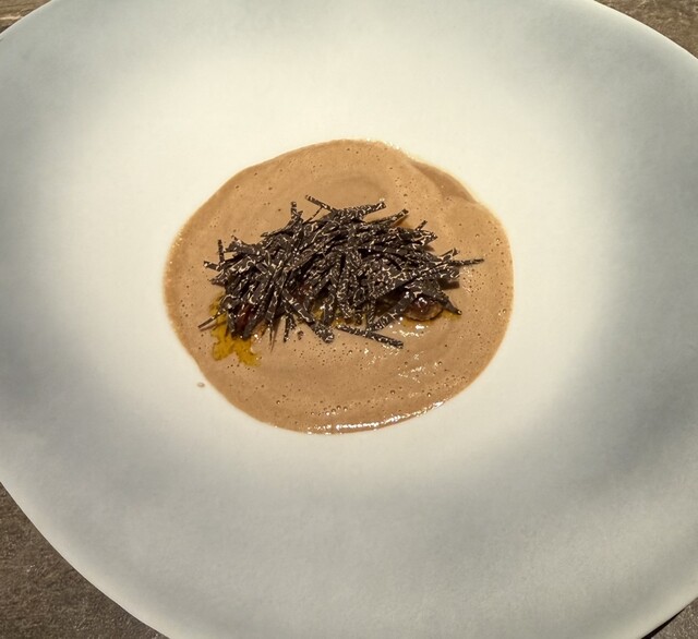 メレンゲでなく鹿の血で固めたマカロンで中にはブーダンノワールが入っている