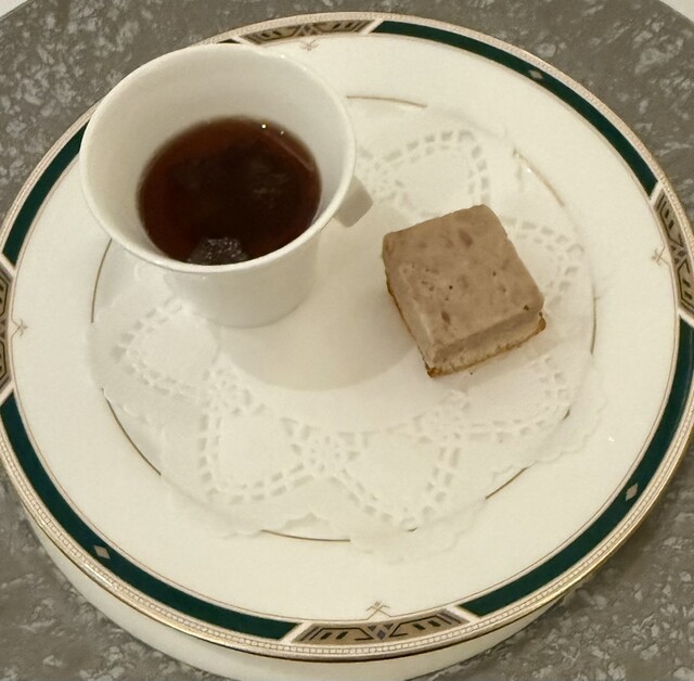 左にあるのは大根の型にいれたフォアグラのブリュレ