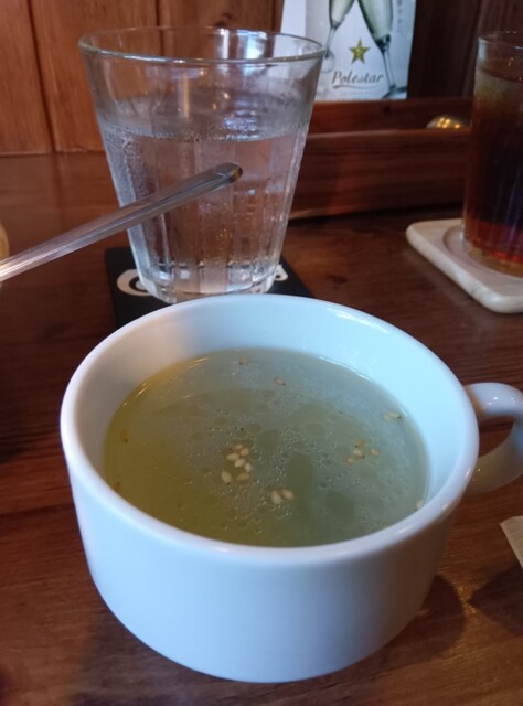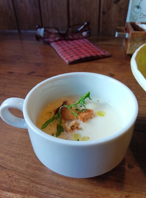 ポークジンジャーにカリフラワーのスープでした。カリフラワーのスープは農家で美味しいスープです。ポークジンジャーは焼く時に生姜をすっているので生姜の風味豊かな美味しい料理です。