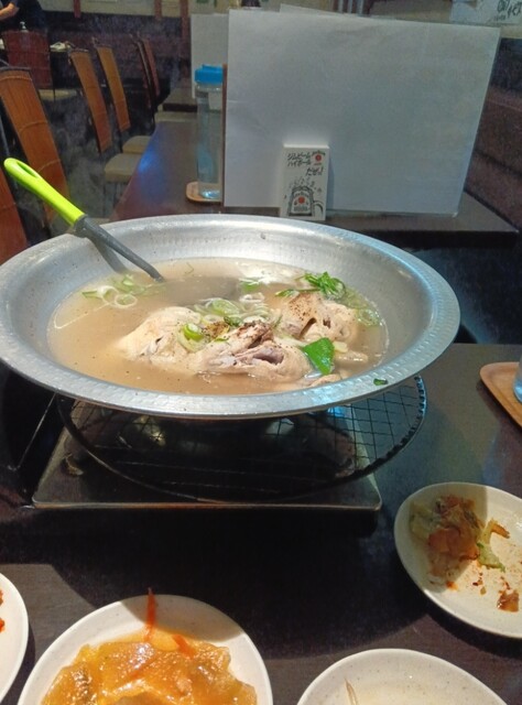 今日は参鶏湯を注文。味は美味しいのですが、量が多くて残してしまいました。チヂミ等おかずも付きますのでハーフを頼まれたほうが良いですね!