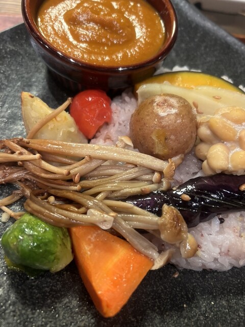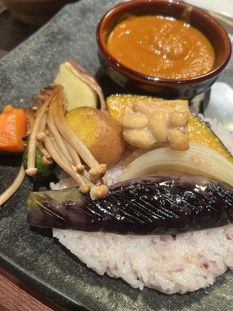野菜が主役。サラダバーと野菜カレーで満足度高め