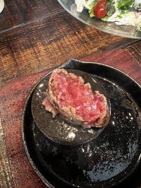 生ハンバーグを石で焼く楽しさ。常陸牛の旨みを堪能