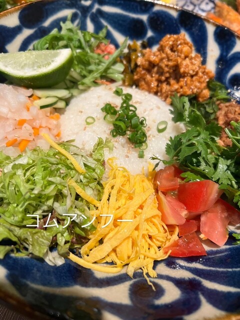 2度目のメコン!前回と違うメニューを注文!どれも美味しそうで迷ったけど、初の青パパイヤサラダがシャキシャキして全くクセもなくドレッシングと相性も良く想像以上に美味しくて友人と2人で感動✨勿論追いパクチーで!トムヤムクンは麺もライスも入れられるけど沢山注文したからスープにしました具沢山だったのでスープで正解◎コムアンフーとやらはライスと混ぜて食べるけど個人的にはミントは無くても良かったかなぁ…それでもお野菜たっぷりで美味しかったですけどねアボガドのナムルも面白い!こちらも美味しい!まぁ、なにを頼んでもアジアン料理好きな方なら満足できるお味ばかり!夕方5時からはワンドリンク制私は運転だったからグレープジュースで乾杯!駐車場は2台あるみたいだけど店員さんが停めてたのでなら確認するか近くに有料パーキング️もあります!⭐️⭐️⭐️