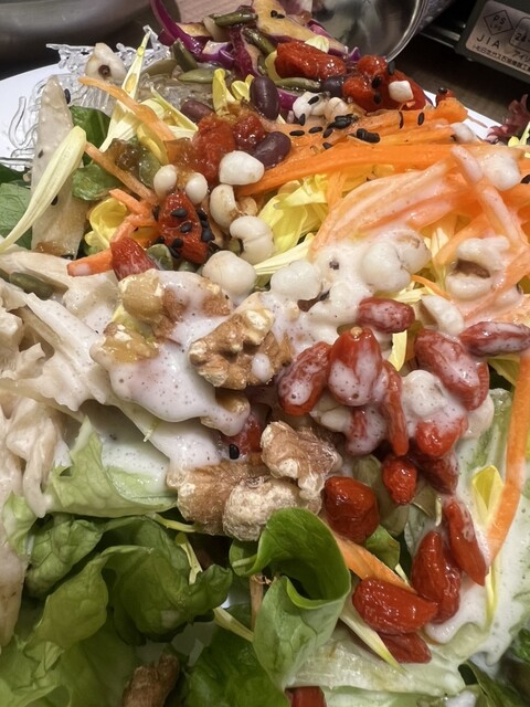 サラダと玄米ご飯も注文したけど、鍋だけで十分お腹いっぱいになったので、玄米は頼まなくてもよかったかも。