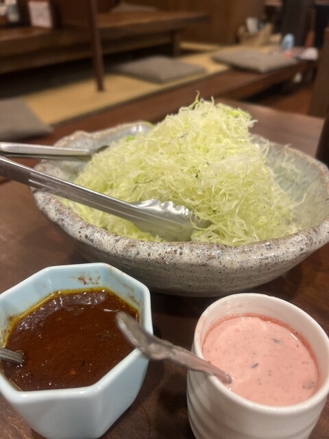友人と言ったのでキャベツは2人分が一つの大皿で